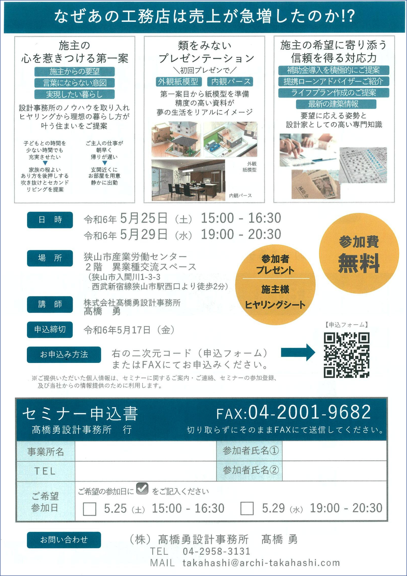 【\ご相談者様セミナー情報/㈱高橋勇設計事務所 】