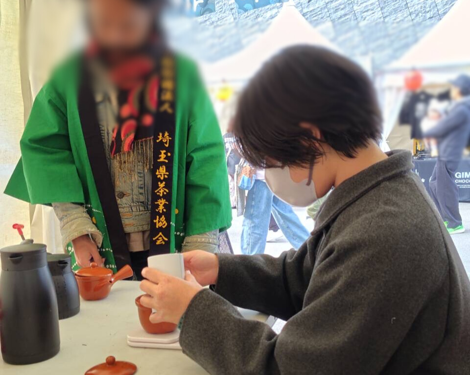 当日は、的場園さんをはじめ、狭山の“沸かし屋 松田”さん、宮野園さんなど、地域の事業者の皆さまが連携し、狭山茶ブースを運営されていました。