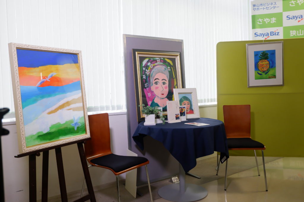 日原さんは、油絵からスタートし、現在は主にアクリル画の制作を中心に活動されています。