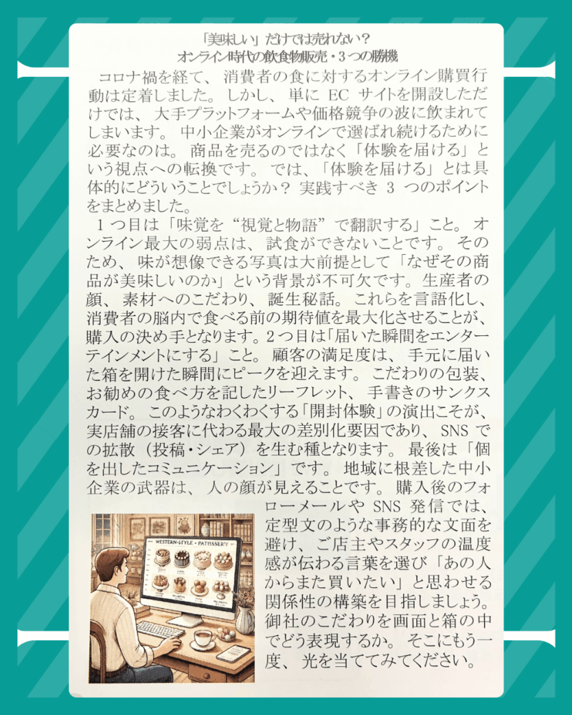 第81回:「美味しい」だけでは売れない?オンライン時代の飲食物販売・3つの勝機